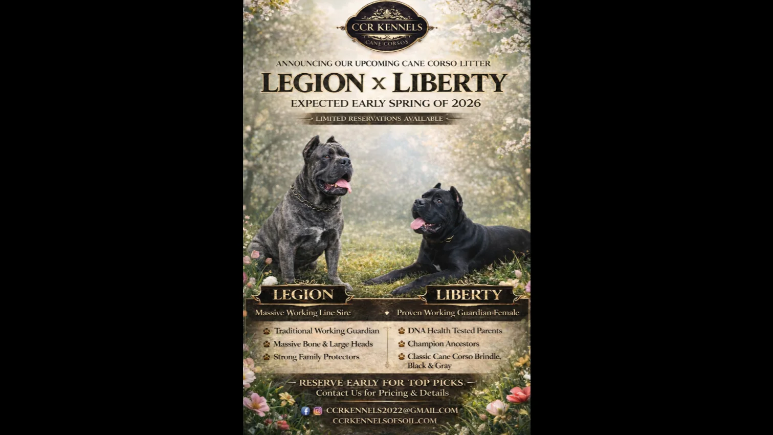 Veteran-owned and family-operated, we're dedicated to raising exceptional Italian Cane Corsos with love, care, and commitment to the breed.